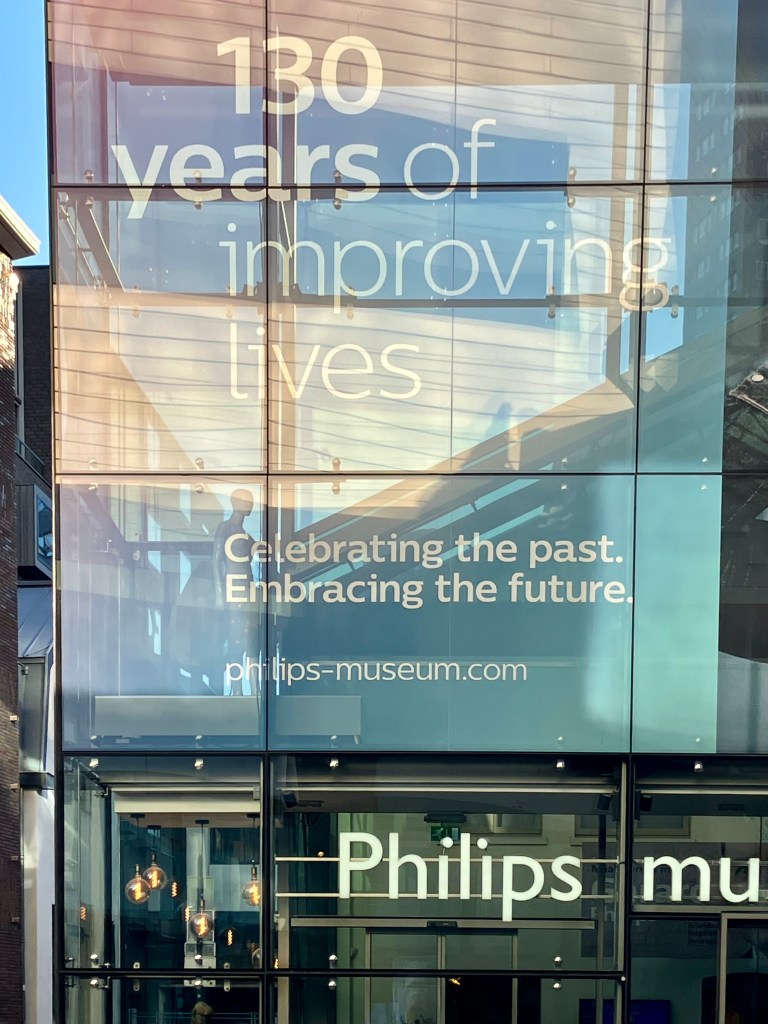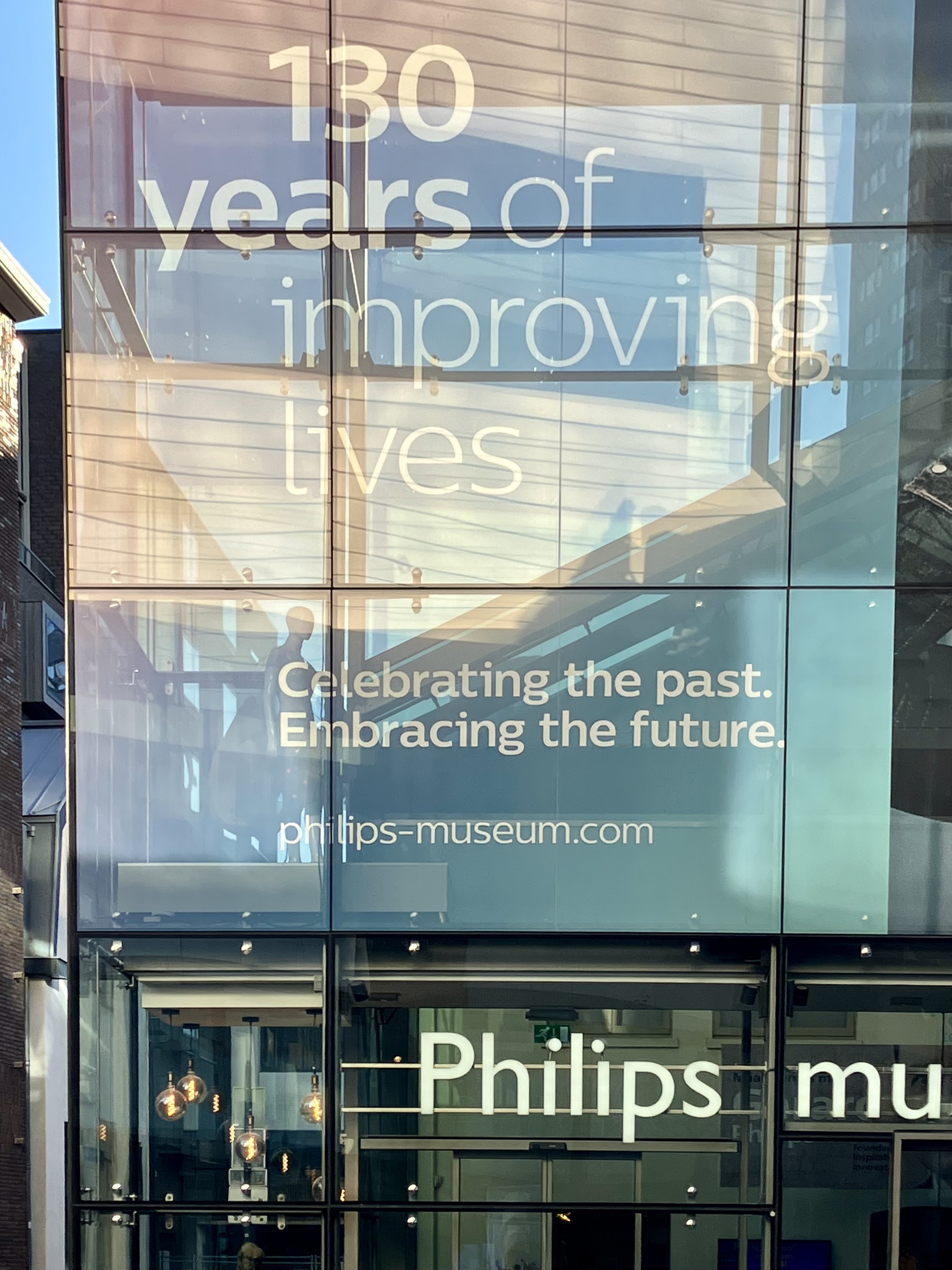 Op de gevel van het Philipsmuseum in Eindhoven staat de mooie gedachte Celebrating the past, embracing the future.